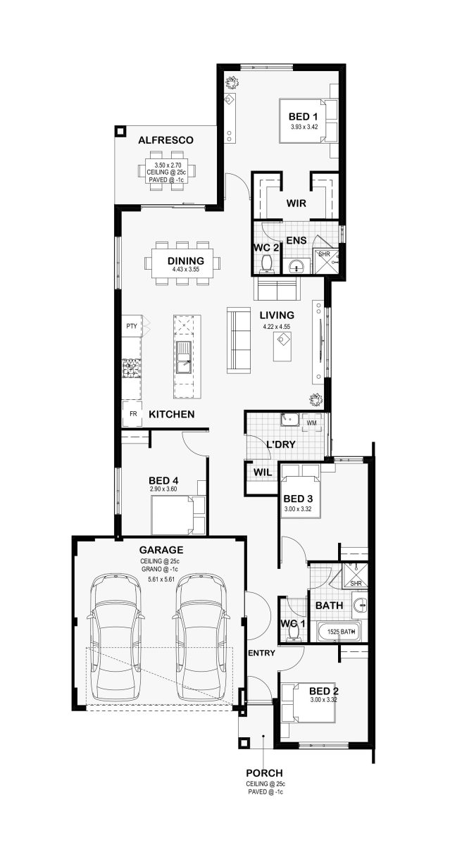 Come home to a thoughtfully planned 4 bedroom, 2 bathroom layout centred around a spacious kitchen, living and dining area that works perfectly for entertaining. The design suits narrower blocks while still giving you room to move.