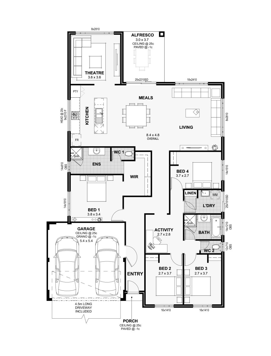 A practical 4 bedroom home with a private master suite, theatre and flexible family living areas.