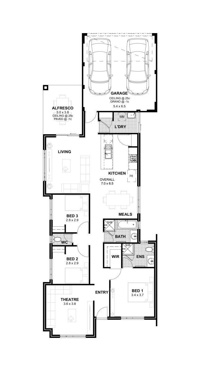 A relaxed three-bedroom home with open living, alfresco entertaining and a dedicated theatre room.
